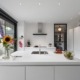 In de NEFF-inductieplaat zit de afzuiginstallatie geïntegreerd. Zo hoefde er geen kap boven het kookeiland en bleef het gehele keukendesign zo strak mogelijk. Net als in hun vorige woning hebben ze een Quooker – toen in chroom, nu in rvs.